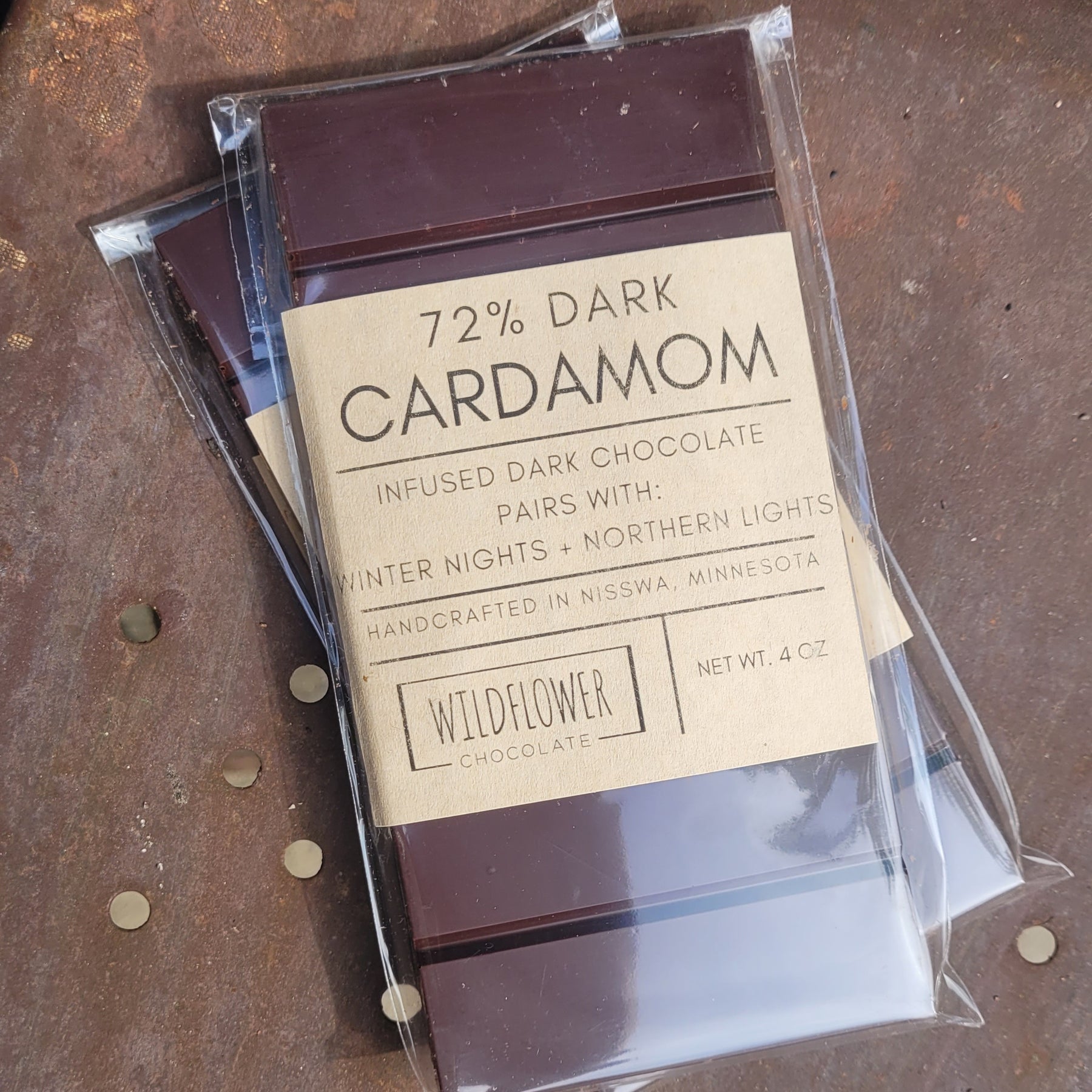 The cardamom in this bar has spent time in our stone refiner, reducing the spice particle size to the smooth melt of chocolate. A great spring board for drinking cocoas!